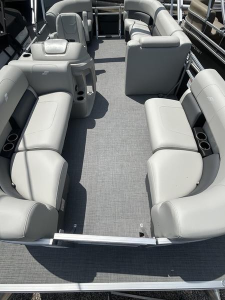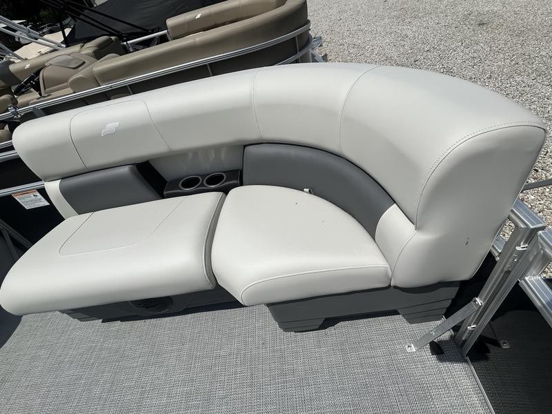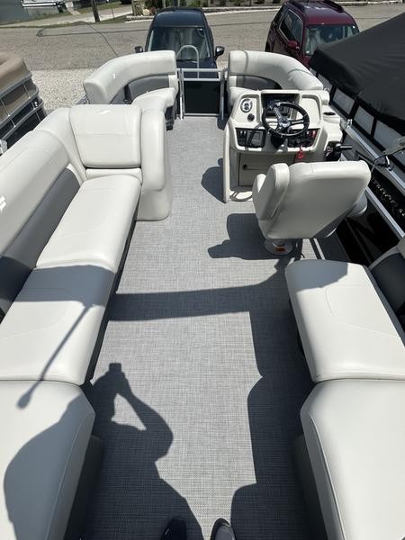 Sun, fun, and affordability all come together on the Starcraft LX 20 R pontoon boat. This feature-packed vessel is perfect for creating lasting memories on the water with family and friends. The included Bimini top provides shade for everyone on board, ensuring a comfortable cruise no matter the time of day. The captain stays in control with a comfortable low-back bucket helm seat, while the rest of the crew can relax and enjoy the scenery from the plush lounge seating that surrounds the entire perimeter of the boat. This versatile seating arrangement allows everyone to find their perfect spot to soak up the sun, chat with companions, or simply enjoy the ride. Re-entering the boat after a refreshing swim is a breeze thanks to the convenient rear entry ladder. With its focus on relaxation, comfort, and affordability, the Starcraft LX 20 R pontoon boat is the ideal choice for a fun-filled day on the water.