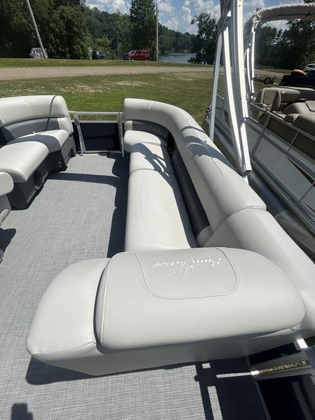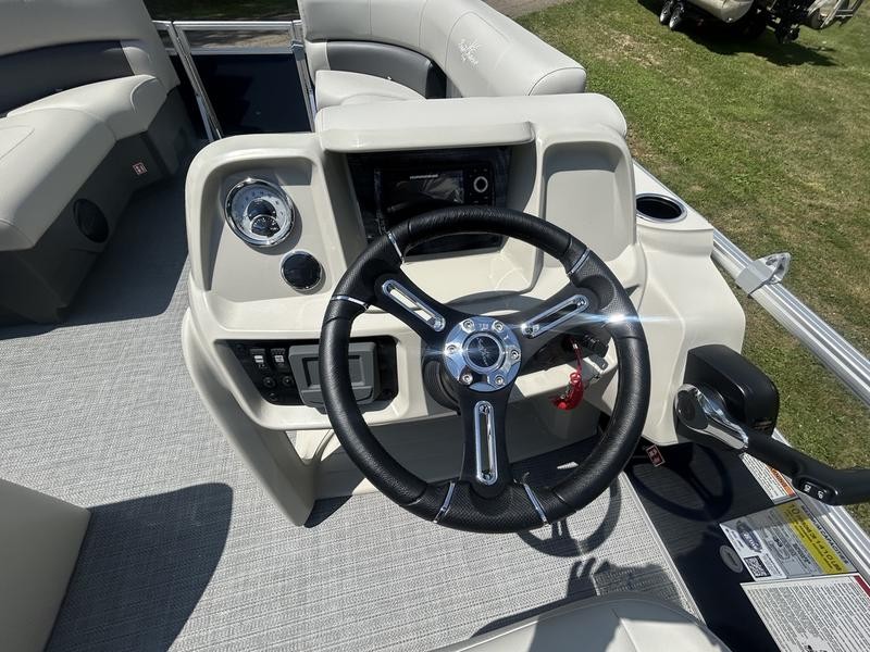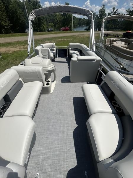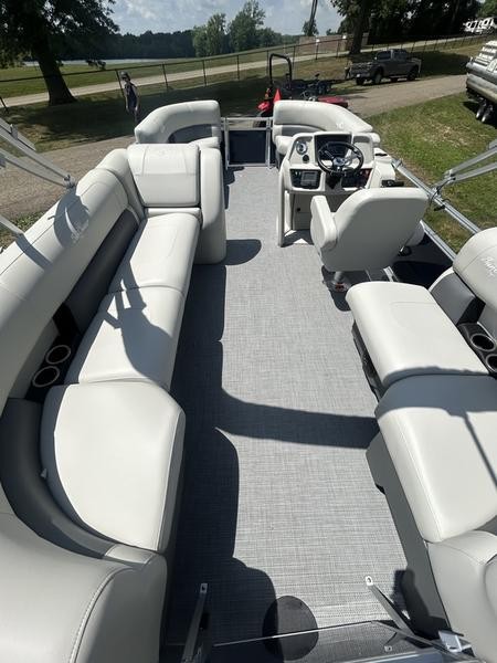 The SunChaser Vista 20 LR pontoon offers a winning combination of comfort and versatility for your next aquatic adventure. Standard features ensure a relaxing and enjoyable day for everyone on board. A sturdy 5-step retractable aluminum ladder makes entering and exiting the pontoon effortless. The interior boasts a comfortable layout with bench seating providing ample space for your crew to relax and socialize. But the true stars of the show are the two chaise lounges, perfect for reclining and soaking up the sun in style. For the captain, a low-back captain's seat offers a touch of luxury while maintaining excellent visibility for navigating the pontoon with ease. This feature-packed pontoon caters to both relaxation and lounging, making it ideal for creating unforgettable memories on the water, whether you're cruising with family or friends.