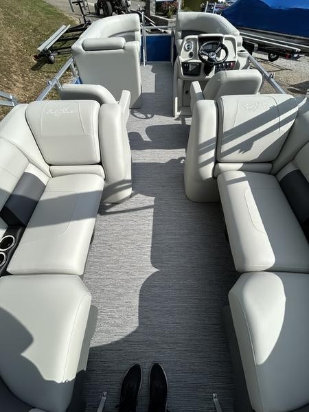 The Sunchaser Vista 22 LR DH is a spacious and well-equipped pontoon boat designed for both relaxation and fun on the water. Featuring a dual-helm setup, it offers versatile steering options for enhanced control and comfort. With ample seating, modern amenities, and durable construction, it’s perfect for family outings or entertaining guests. Its sleek design and smooth ride make the Vista 22 LR DH a great choice for boating enthusiasts seeking both style and performance.