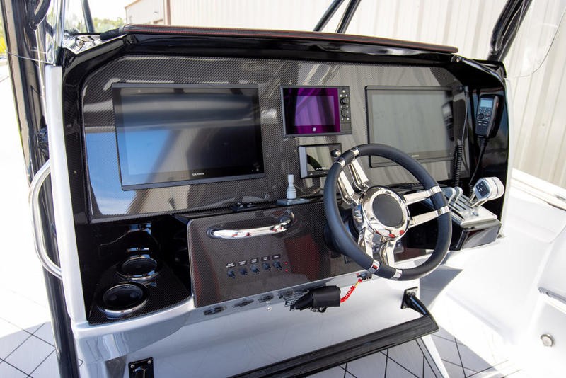 Inside, the vessel boasts a high‑end electronics package: Garmin navigation with radar, VHF radio, autopilot, an electric windlass, and premium JL Audio sound complete with Bluetooth connectivity. Practical features such as swim steps, ample seating, and generous onboard storage enhance both adventure and relaxation aboard this offshore capable center console.