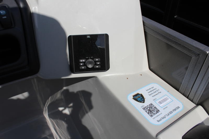 The boat’s exterior boasts a charcoal finish while the interior showcases grey seagrass carpeting. With an overall length of 24 feet 8 inches, an 8‑foot-6‑inch beam, and a maximum weight capacity of 2,720 pounds, it comfortably accommodates up to sixteen passengers.